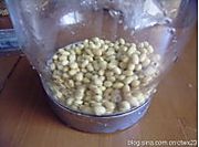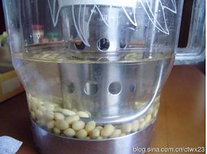 第二天早上把浸泡的水沥干,把黄豆放入豆浆机中