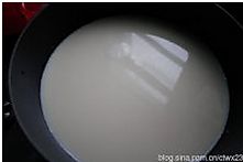 把过滤好的豆浆放火上用中小火开始煮,小心粘底哦,还有尽量开着锅盖煮,否则不小心就会溢出来
