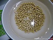 前一晚量取一杯黄豆,约85克,冲洗干净加水浸泡过夜。(因为要分开做的,所以二杯要分开浸泡)(说明:原配方是100克黄豆加1000克水。可是豆浆机配的杯子一次量出来差不多是85克的豆子,我怕多些黄会损坏豆浆机,所以就用了85克,所以后来加水就加了800克,以保证浓度。这样做出来也一样的)