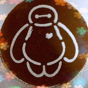 取出来的蛋糕筛一层可可粉。再放上大白模板筛一层糖粉。