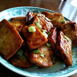 倒入糖醋汁,不停翻炒,让豆腐蘸满糖醋汁,撒葱花,出锅啦!