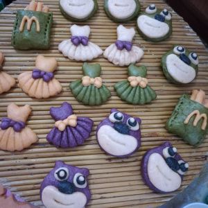 因为太匆忙居然忘记拍和面的照片了,过程和我以前发过的是一样的,用模具抠出想要的每个部分,在刷点水,组合在我一起粘上,