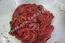 将牛肉表面筋膜剔除后横纹切薄片,清水中漂洗后拧干备用;准备腌制酱汁:黑椒汁3大勺+1勺自制混合豉汁料(做法请看这里)+1/2勺菠萝汁,加入适量水将其搅拌均匀;将调好的腌酱汁慢慢倒入牛柳中,边倒边搅拌,让牛肉把腌酱汁“吃”掉(即牛里脊呈膨胀状态),将牛柳腌制约20分钟,撒上干淀粉拌匀,再浇一勺油拌匀备用。