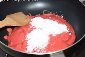 继续加热,并不停地搅拌,以防沾锅直至果酱很浓稠即可关火