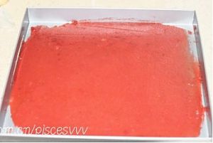 将果泥倒入盘子摊开,用刮板把表面刮平,厚度约2~3mm,烤箱调至135°中层,烘50分钟左右,取出后将把烤盘放置通风处放凉,用刮片轻轻揭开,把山楂卷切去四周不规则的部分,卷成卷后切成适合的大小用糖果纸卷起即可;