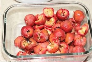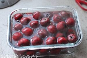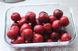 山楂去掉果柄,洗干净,放入容器内