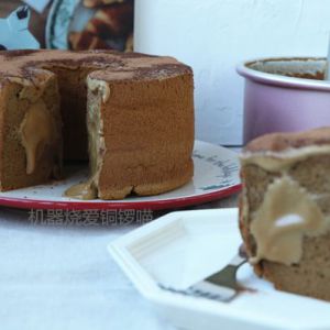 蛋糕体:蛋黄50g 玉米油40g 黑咖啡粉10g 开水45g 咖啡酒15g 韩国咖啡酱15g 低粉60g 玉米淀粉20g 蛋白160g 柠檬汁几滴 砂糖60g