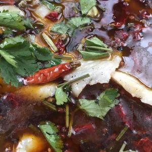 成了!!放点蒜片和香菜,纯属装饰~~冬天,来点白酒。火辣辣!爽!!!