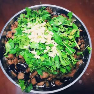 出锅后在上面洒上香菜和蒜泥,口感会更好。因人而异,如果不喜欢吃香菜和蒜,这一步就可以省略掉了