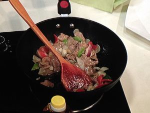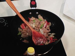 把牛肉回锅。
