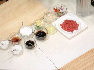 注入芡汁(酱油、蠔油、料酒、麻油、胡椒粉、生粉水)。