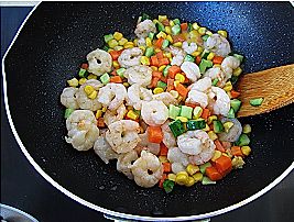 然后加入事先炒好的虾仁,翻炒均匀,即可关火