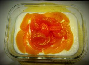 最后将牛奶放入锅中隔水蒸十分钟左右,用筷子从中间刺入,没有牛奶流出说明全部凝结起来了。最后把水果按照自己喜欢摆放好。