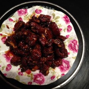 炸至金黄舀起,将白糖倒入有少许油的锅中,白糖熬起泡(俗称熬糖色),将盐、鸡精、老抽、醋放入锅中,再把炸好的排骨倒入锅中,加水小火闷煮,水快干时大火收汁。