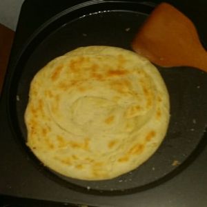 烙至两面金黄即可。在烙饼过程中,饼7.8成熟时,可以将饼在饼铛里摔打几下,目的是使饼有层次感,更松软。