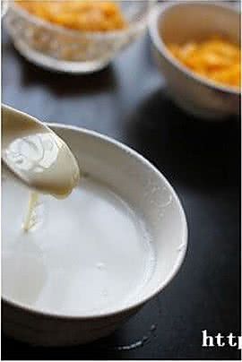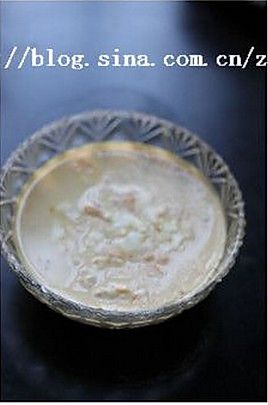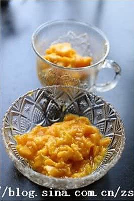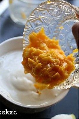 现在芒果有三种形态,芒果片、芒果粒、芒果泥(如果你勤快的话,建议用搅拌机把芒果泥打得更细些),把芒果泥装在小碗中,马上要用到;