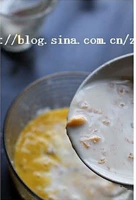 用筷子稍加搅拌,使其尽量均匀些(勤快的童鞋别学我,芒果还是用搅拌机打吧,会更细腻);