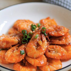 起锅热油,倒入腌制好的虾炒至色泽金黄捞出备用^_^
