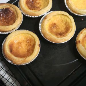 面粉,鸡蛋,加热好的混合物混合成蛋挞水。过筛子或打蛋器打均匀。