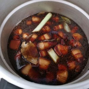 加没过肉的热水(要热水!)。压22分钟。压好放气再焖一会儿。倍儿香!