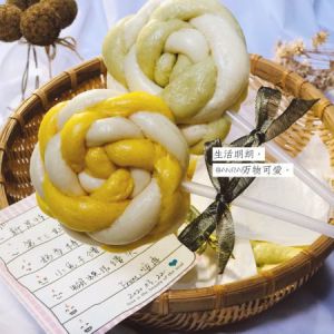压主体下面,不要像我一样卷太紧,留一点发酵空间,剪大小差不多的油纸,把面团放上面