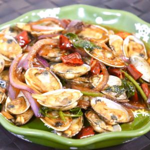 锅中加入适量油,将辣椒段和洋葱炒香,加入料酒,糖,蚝油,生抽和辣椒酱