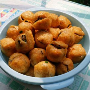 准备工作好了,要开始酿了酿的时候没有技巧,往里面塞,摁实压实。(不是用尽全力就是摁实的那种就OK啦)