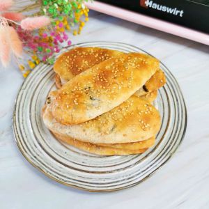 擀成牛舌状,刷蜂蜜水撒芝麻轻轻按压下