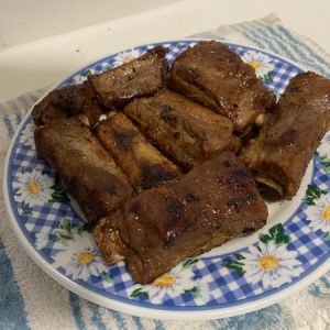 酱汁略干,转中小火煮一下排骨。酱汁收干即可;喜欢焦香味的,酱汁收干时再煮一会儿才上碟。
