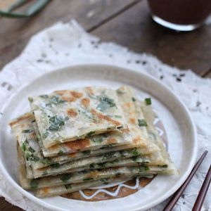 在上面盖上一张饺子皮,继续刷油,撒少许盐和葱花重复步骤3至4次^_^