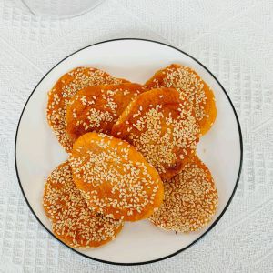 锅中放油煎,煎到南瓜饼敲的响,鼓起来就可以了。