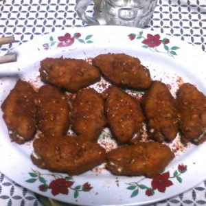 加入料酒,盐,十三香,鸡精,炸鸡粉,酱油,大蒜等,,,腌制鸡翅,二十分钟