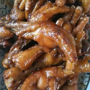 焯水的鸡爪沥干水,起油锅,放入姜片,花椒干辣椒等等的辅料暴香,下鸡爪翻炒