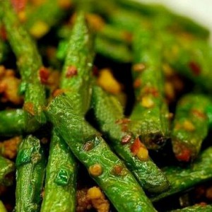 倒入煸好的四季豆翻炒,出锅前加盐,糖,翻炒半分钟后即可出锅。