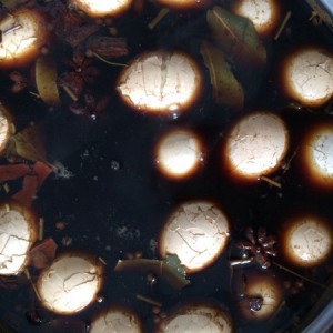 汤料味道合适后再放入鸡蛋,盖上锅盖,最小火焖煮至鸡蛋过色后捞出食用,焖煮过程中可以加水,或者泡一晚,第二天煮后更入味