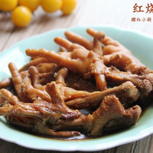 将鸡爪挖出用流动的水不停冲洗,沥干;