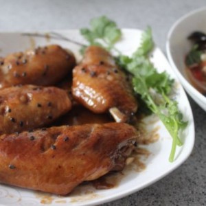 鸡翅洗净划两刀,用盐和酱油腌制半个小时入味(加一点料酒去腥 不过鸡肉不怎么腥)