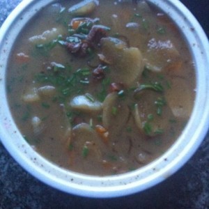 放入萝卜,大火烧开,转中火炖到萝卜变软熟透(我喜欢吃粉条,今天就往里边加了点红薯粉)加入少许盐