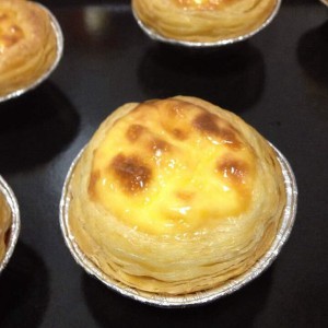 再次将搅拌好的蛋挞液过滤,分装入塔皮内