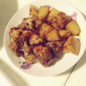 不停在锅里搅拌一会儿。后来等排骨的肉色变成了有点和刚刚调料一样的颜色,就可以了,大概20分钟吧
