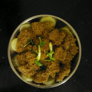 放入蒸锅或压力锅蒸十几分钟即可。土豆又软又绵,肉蒸出的汁和油正好给土豆吸收,味道不错啦!