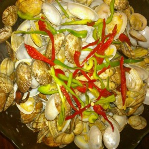 如果喜欢吃蒜香文蛤的话,油热后先放大蒜头,爆出香味后再放辣椒姜片,,,,