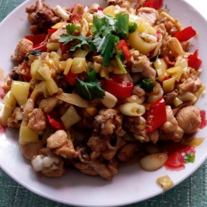 热油下姜蒜,小尖椒爆香,入酸辣椒略吵,入鸡肉,爆炒入味,调味出锅。