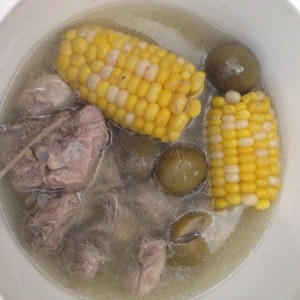 加入500g排骨,4-5颗青橄榄,一根玉米,适量水。放入高压锅中,选择煲汤模式,约30分钟