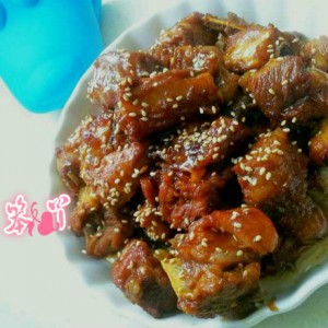 收汁后,盛出。撒上白芝麻妆点下就可以大快朵颐了