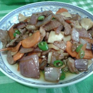 鸡腿菇洋葱胡萝卜青椒炒肉片