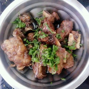 入排骨,着色。因为第一步已经加入盐糖,里面肉味已经很鲜美了。熬得汁成稠状就可以起锅了。