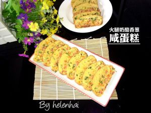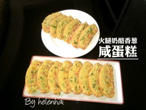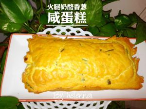 这样简单美味的火腿奶酪香葱咸蛋糕就做好了~!