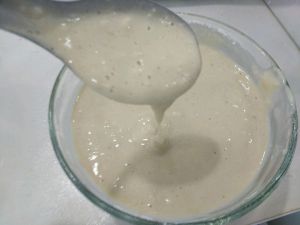 面糊调到细腻,有一点缓慢低落的状态是最好。