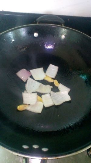 热油,放进切好的姜片和洋葱,爆香后放鸡肉快炒